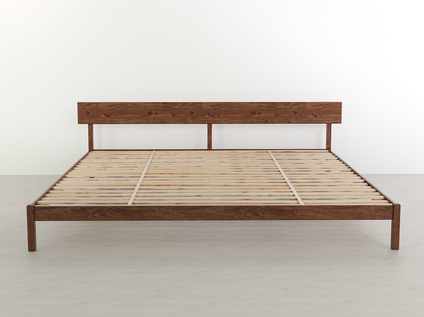 This platform bed frame provides the necessary strength and stability to elevate and support a 9-by-9-foot mattress. In addition to the exterior frame, solid hardwood slats and two central support beams bolster your bed.