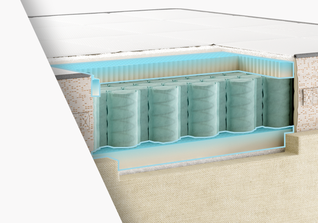 As an extra foundation, we included a cotton/wool stability layer. The support coils rest on this bottom layer, increasing the mattress's overall stability and durability.