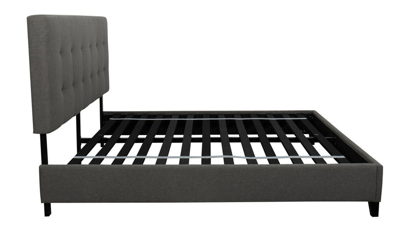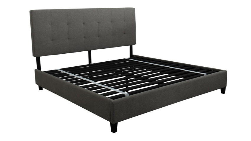 The Tranquility's fresh but traditional features make it a cohesive fit for virtually any bedroom. Its charcoal gray upholstery and tufted headboard give it a cozy, calming feel that will complement your space and comfortable sleep.